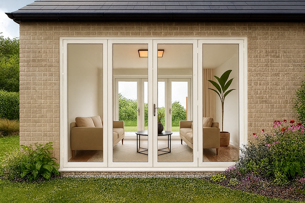 This Composite Single door set is supplied pre-hung in a outer frame with soft-coated low-E glass units. The 70mm thermally efficient multi-chamber frame system has ultra-slim sight lines, clean and modern aesthetics, and low maintenance. It is guaranteed not to warp or peel and is internally beaded for maximum security. Compliant with Part L Building Regulations.